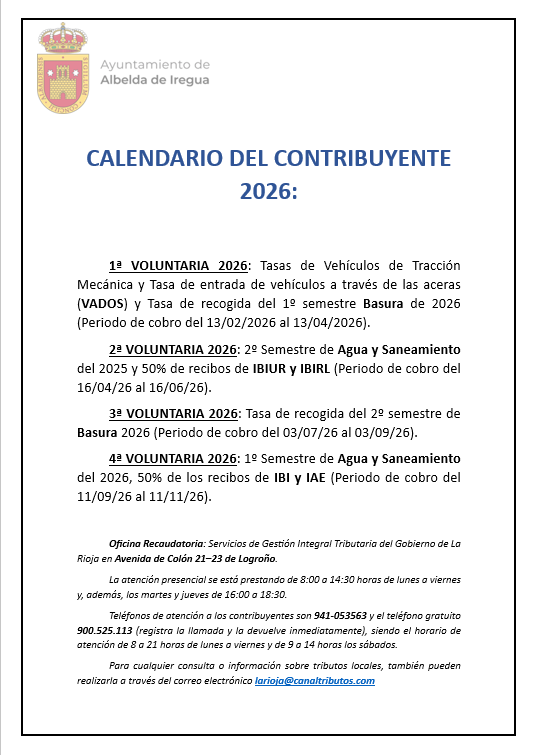 CALENDARIO DEL CONTRIBUYENTE 2026