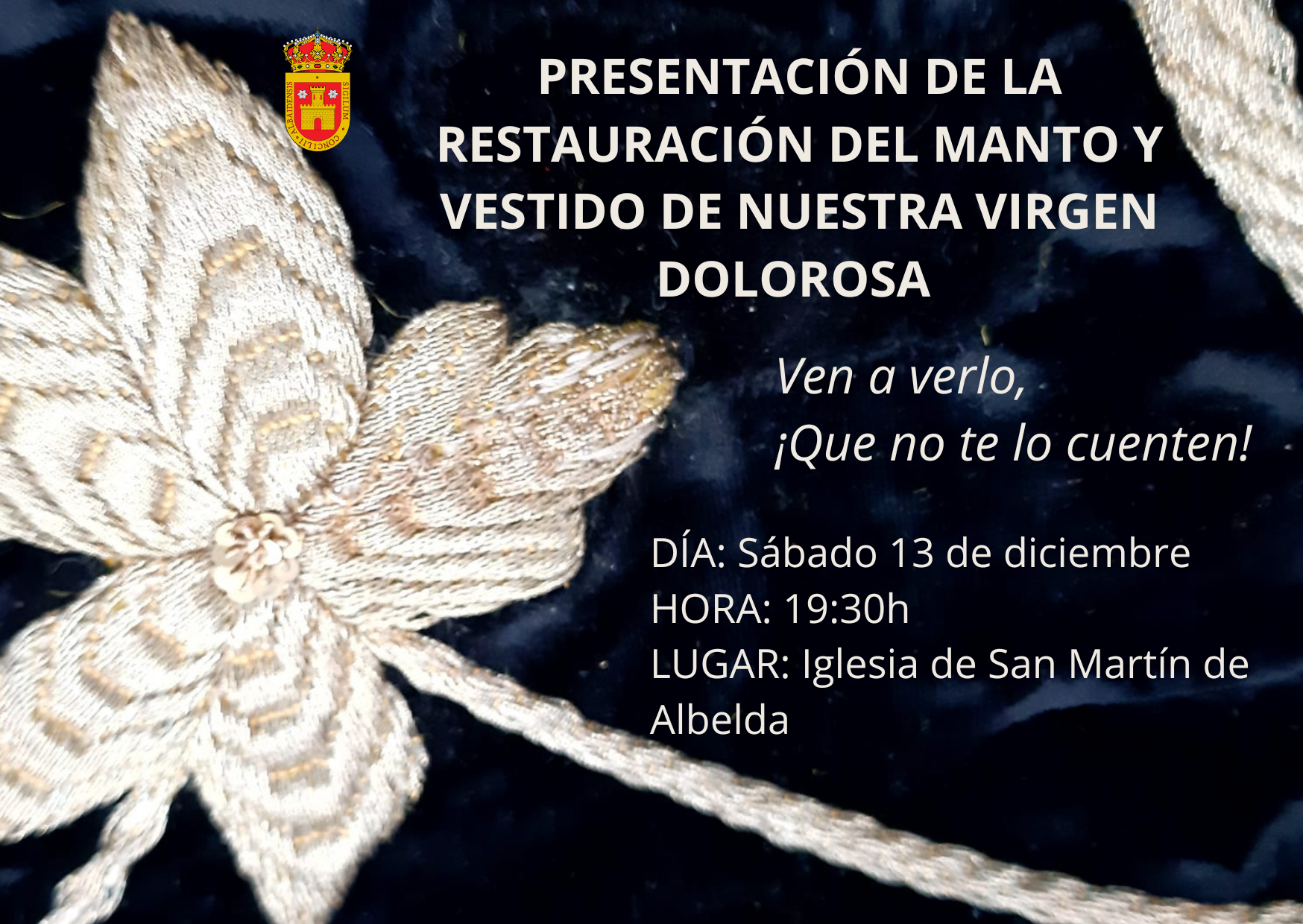 PRESENTACIÓN DE LA RESTAURACIÓN DEL MANTO Y VESTIDO DE NTRA. VIRGEN DOLOROSA Detalles 05 Diciembre 2025