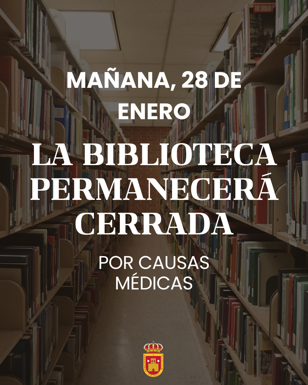 LA BIBLIOTECA PERMANECERÁ CERRADA EL DÍA 23 DE ENERO